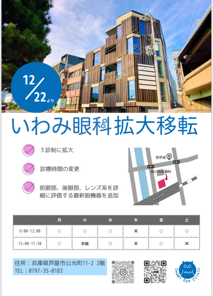 いわみ眼科は、2025年12月22日(月)より拡大移転後の新しいクリニックでの診療を開始いたします。