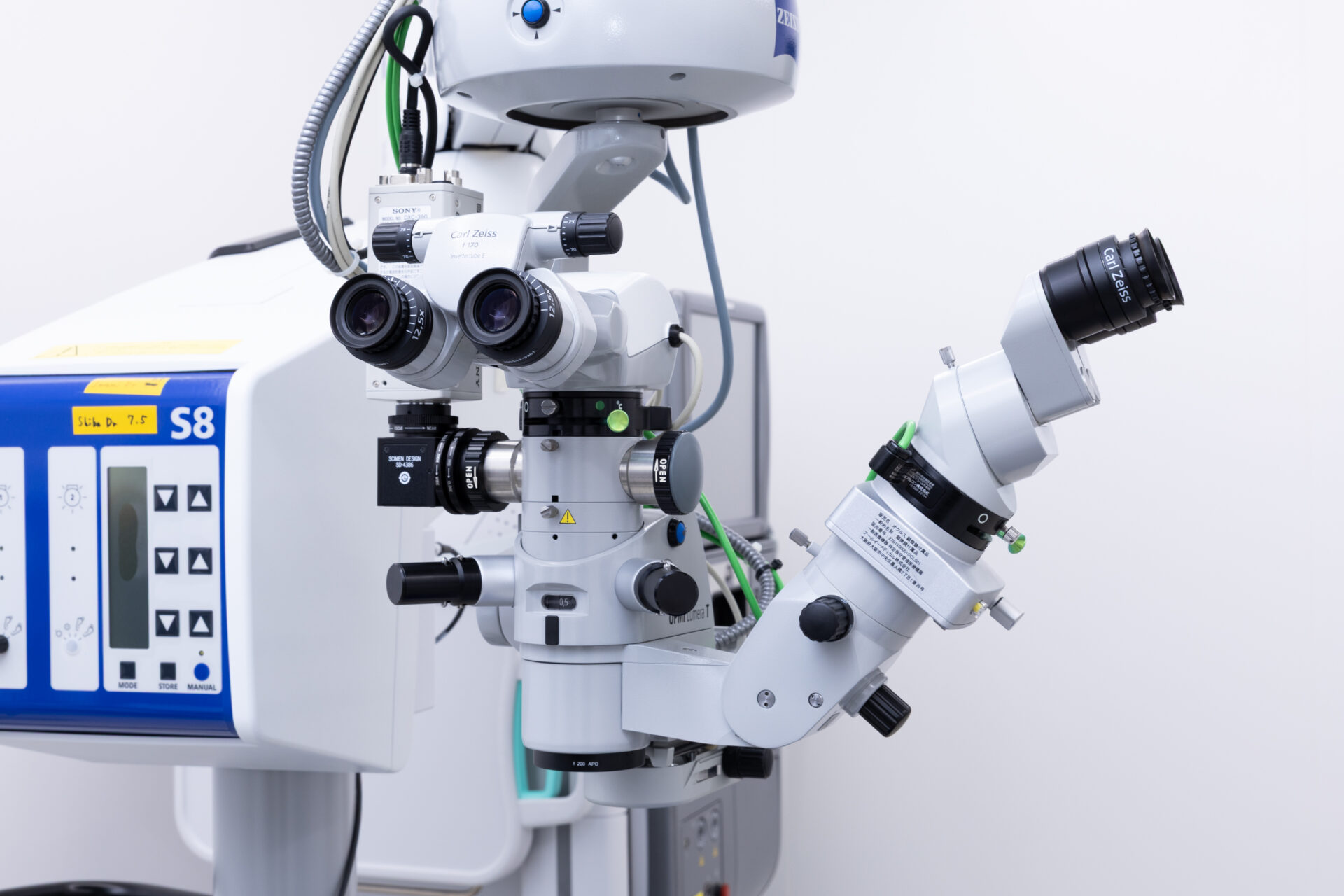 主に白内障や網膜硝子体の手術などで、眼の微細な組織を拡大して観察しながら手術を行うための装置です。